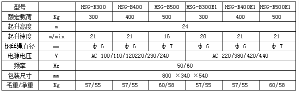 HSG-B500E1推式微型電動(dòng)葫蘆參數(shù)表: